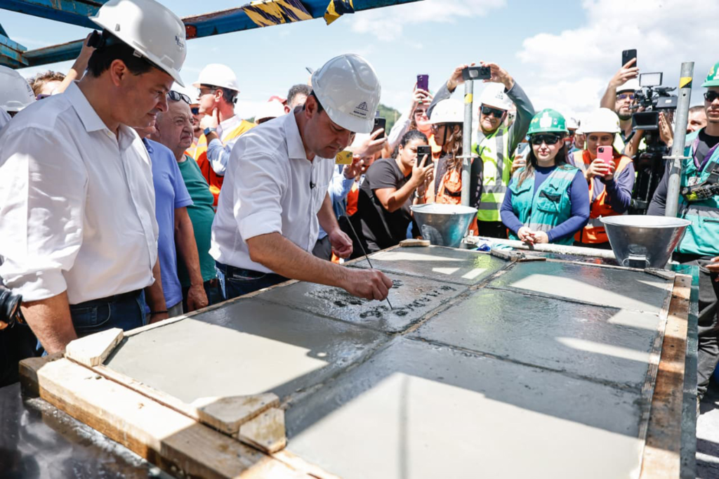 O governador Carlos Massa Ratinho Junior visitou a obra na manhã desta sexta-feira (6) e ajudou a concretar o último metro cúbico que faltava. Ele foi um dos primeiros civis a fazer a travessia simbólica entre as duas cidades e também colocou uma placa no local para eternizar o momento da construção da ponte, realizada a partir de um investimento de R$ 400 milhões do Governo do Paraná.